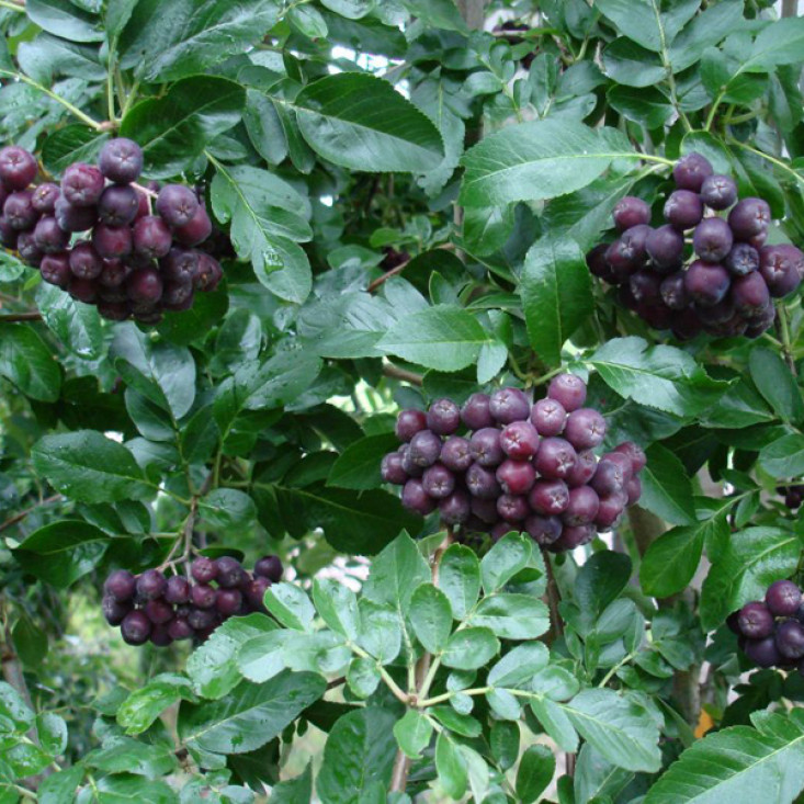 Сорбарония Мичурина - это кустарник среднего размера, достигающий высоты до 3 метров. Листья тёмно-зелёные, блестящие, осенью приобретают ярко-красный оттенок, добавляя декоративности вашему саду. Цветёт в мае, привлекая внимание многочисленными белыми соцветиями. Ягоды крупные, чёрные, собраны в гроздья, созревают в августе-сентябре.